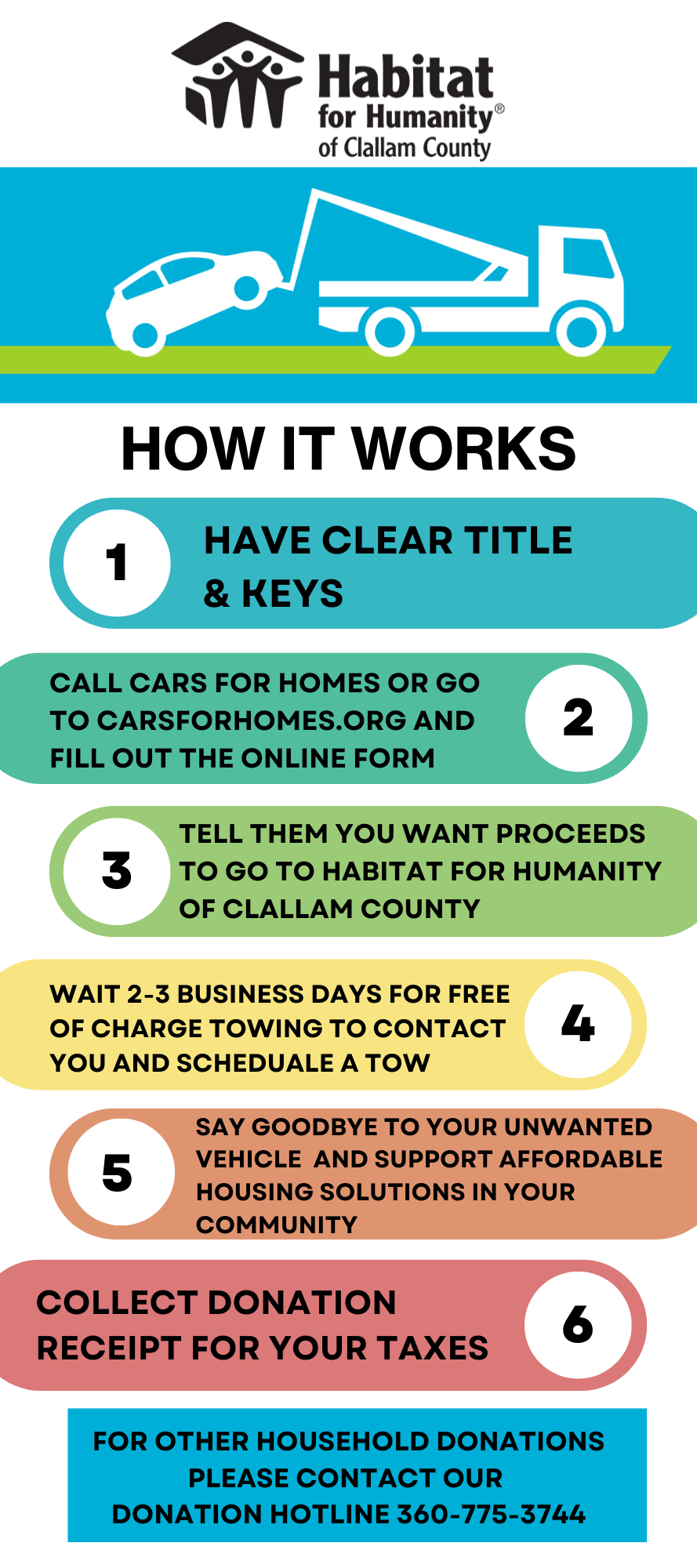 Read below to learn how you can donate your car to support Habitat Clallam!